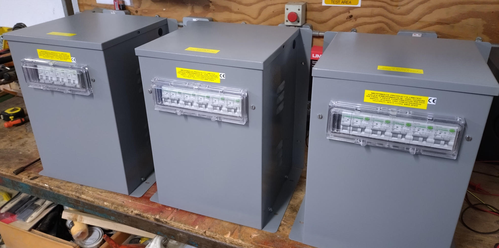 We also cater for many types of custom three phase and single phase transformers, Auto Transformers, three phase to single phase transformers, Variacs, site distribution transformers, single phase to three phase convertors, custom control panels with multiple socket outlets, AC/DC Power supplies, DIN Rail Transformers, Various ranges of enclosures and control panels from IP23 to IP66.